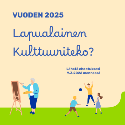 Ehdotukset perusteluineen tulee lähettää kulttuuritoimistoon 9.3.2026 mennessä osoitteeseen, tuula.ylisaari@lapua.fi.